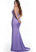 Jovani 42221 is a stunning fitted gown adorned with delicate embroidery and intricate beaded appliques for a timeless, elegant look. The sleek jersey fabric hugs your curves, while the design's subtle sparkle adds glamour to any formal event. Perfect for prom or special occasions, this dress is an enchanting choice that blends sophistication with modern style.