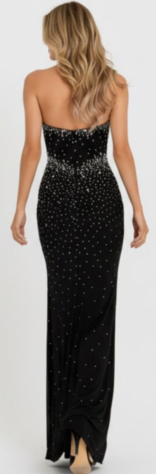 Make an unforgettable entrance in the Jovani 48372 Gown, a sleek strapless fitted gown adorned with rhinestone embellishments that sparkle from every angle. The figure-hugging silhouette highlights your curves with sophistication, while the floor-length design exudes timeless glamour—perfect for prom, galas, or any formal event.